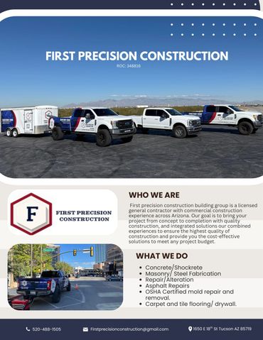 At First Precision Construction, we specialize in a variety of building and renovation services. Our experienced team ensures quality craftsmanship and attention to detail in every project. Licensed, bonded and insured.